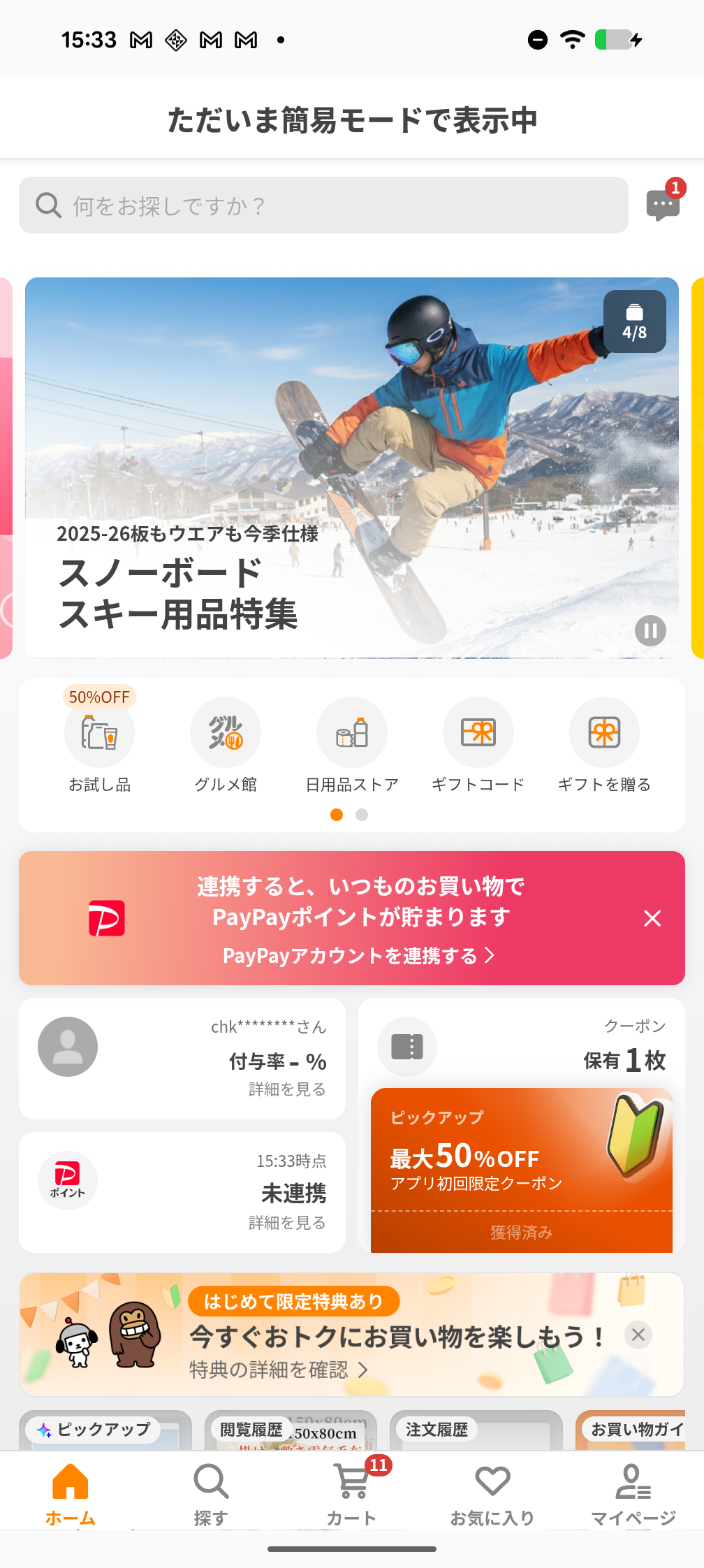 アプリ向けのキャンペーンの適用の有無については、カート画面でのポイント数をご確認ください。